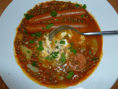 I have another recipe here already, a less spicy and retro 80’s Lentil soup with frankfurters.