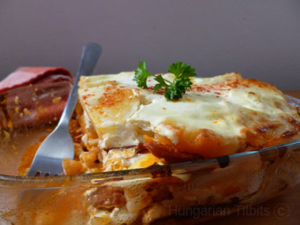 - 200 g (7 oz) Hungarian kolbász or chorizo sausage – sliced
